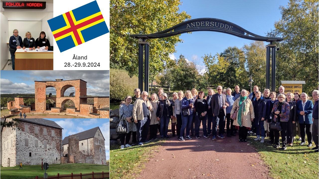 I föreningens två dagars resa till Åland deltog 31 nordister från Esbo, Helsingfors, Vanda, Orimattila, Uleåborg och Vasa. Vi träffade Andersuddes värd Anders Wiklöf och fick bekanta oss med hans konstsamling under ledning av Kjell Ekström, samt tog en rundtur till de historiska platserna Bomarsunds ruiner och Kastelholms slott. Gruppen träffade också Freya Roe, som är projektledare för Info Norden, Nordiska ministerrådets informationstjänst.